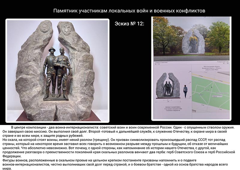 Как пояснили в администрации, идея установки такого памятника возникла у общественной организации «Боевое братство» много лет назад. 669 обнинцев прошли через боевые действия. 216 человек воевали в Афганистане, 448 стали участниками контртеррористических операций на Северном Кавказе и пятеро - миротворческой операции в Сирии. В мэрии подчеркнули, что история Обнинска неразрывно связана с этими событиями. Памятник увековечит память о героях нашего города.