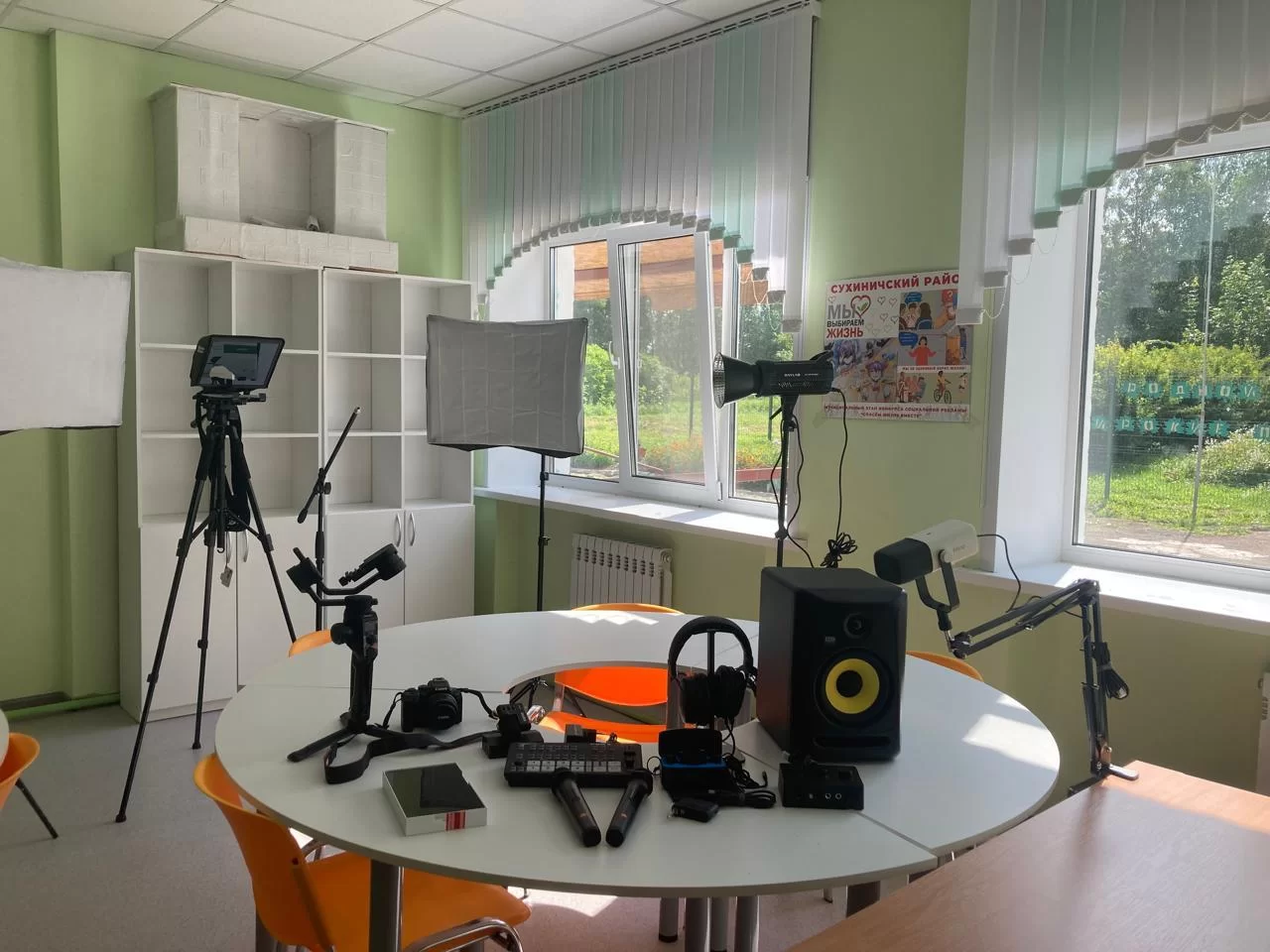 В образовательном учреждении установлена школьная телестудия, оборудованная кинокамерой, видеомикшером, телесуфлером, радиосистемой и другой аппаратурой. Новое пространство позволит школьникам не только получать дополнительное образование, но и развивать информационную культуру, формировать навыки общения и сотрудничества, а также основы медийно-информационной грамотности.