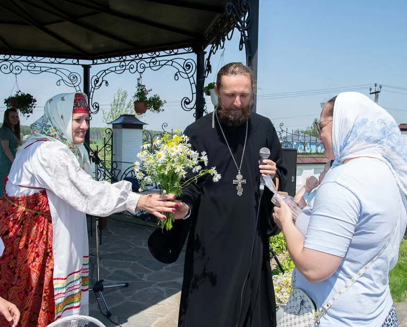 Все семьи получили подарки от отца Дионисия, а мамам батюшка вручил по букету ромашек.