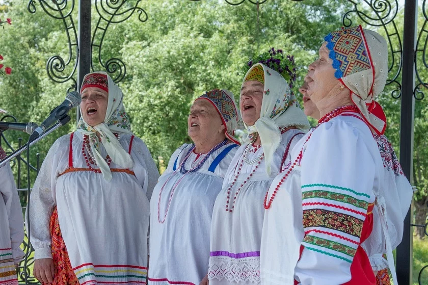 Гостей накормили вкусным горячим обедом, а в ротонде, с которой открывается чудесный вид на местные пруды, состоялся концерт. Народные песни окрестных деревень исполнили а капелла солистки фольклорного ансамбля «Русская песня» из села Волконского.