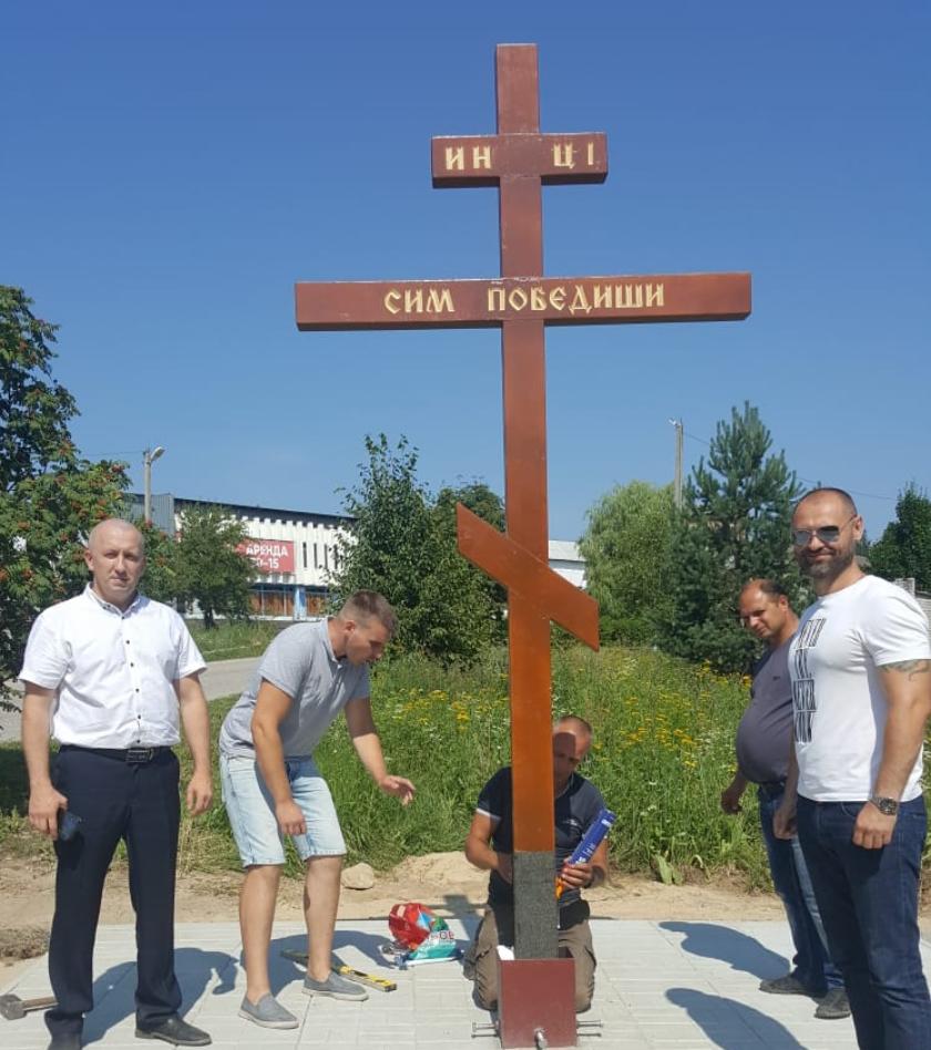 Хорошим поводом претворить в жизнь давнюю идею послужило 850-летие со Дня рождения святого благоверного князя Александра Невского. Депутат городской думы организовал работы по подготовке площадки для предстоящей установки. Большую помощь в изготовлении самого Креста оказал агрегатный завод. Крест получился очень красивым: около 4 метров высотой с памятной надписью «СИМ ПОБЕДИШИ», что в православной христианской традиции утверждает всепобеждающую веру в Христа.