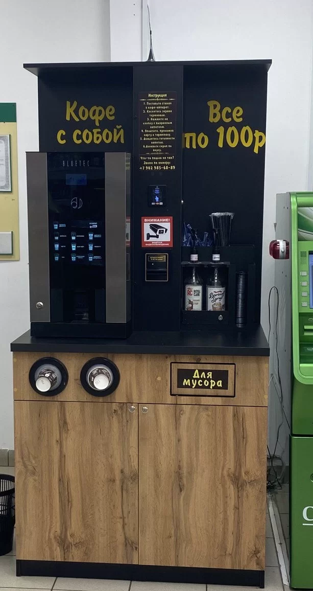 В Кирове Калужской области в нескольких супермаркетах предприниматели установили кофейные автоматы. Они умеют готовить десять разновидностей ароматного горячего напитка, а при желании можно добавить различные сиропы.