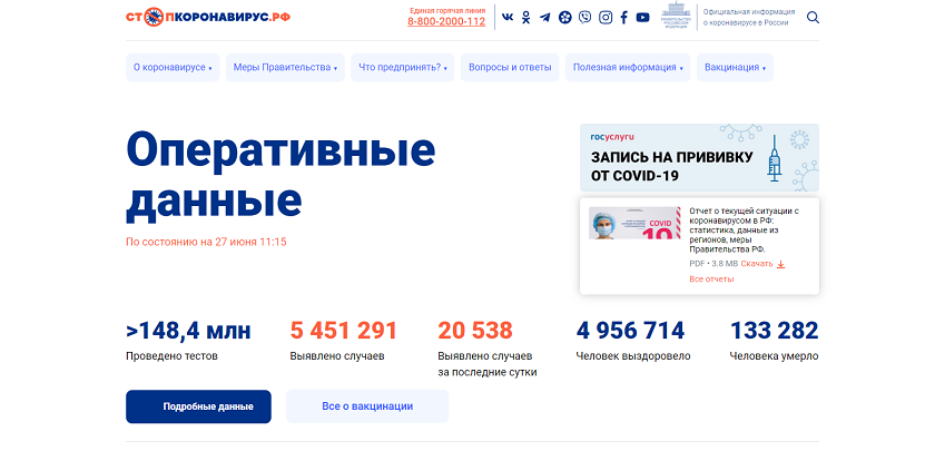 Фото - скриншот с сайта стопкоронавирус.рф.