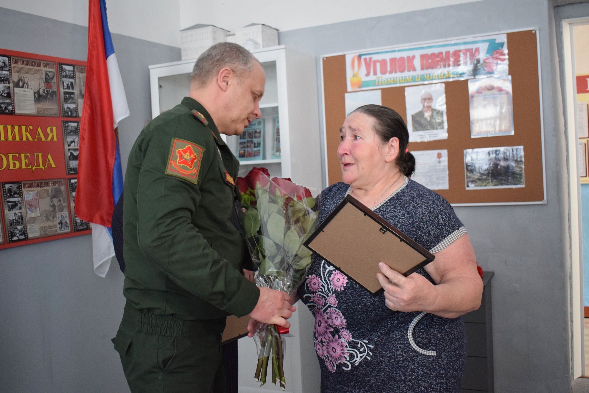 На Урок мужества пришли родители воина Владимир Алексеевич и Татьяна Владимировна Орешёнковы. Благодарственное письмо за подписью командира войсковой части, где служил их сын, вручили заместитель главы округа Людмила Удовиченко и военный комиссар Максим Чехоев.