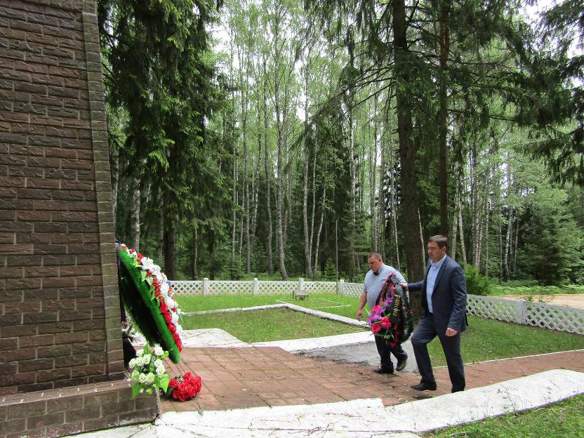 На снимке: венок к памятнику «Жертвам фашизма» возлагают представители администрации МР «Спас-Деменский район» Дмитрий Крисаненков и Виталий Илларионов.