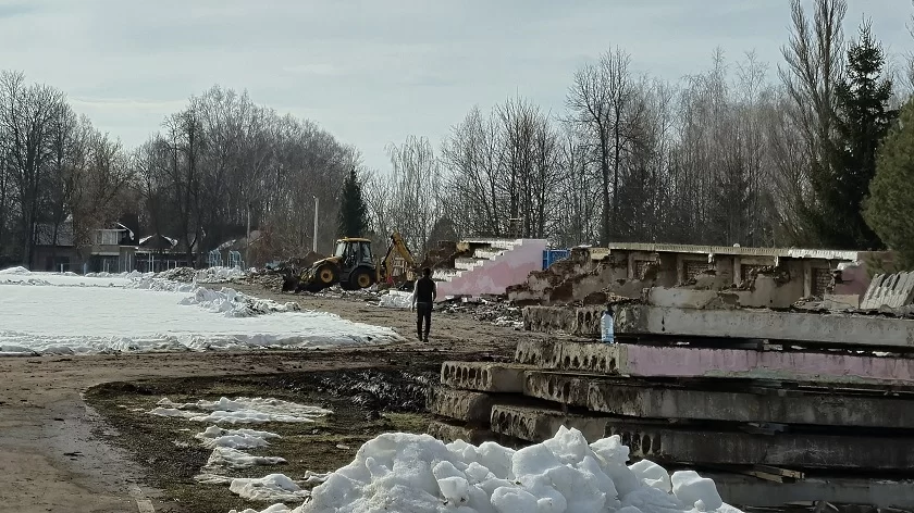 Вскоре начнутся работы и на футбольном поле. В настоящее время оно расположено под наклоном, но скоро строители возведут подпорную стенку и займутся его выравниванием.
