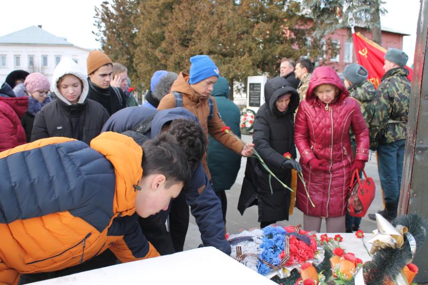 О суровых годах оккупации участникам митинга рассказал знаменитый тарусский фронтовик Александр Ильич Фетисов. Несмотря на почтенный возраст и пронизывающий ветер, он держался стойко, подавая пример молодым. История освобождения Тарусского района от коричневой чумы из его уст звучала сурово и правдиво.