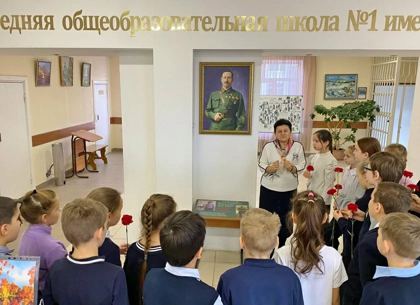 К Парте Героя спецоперации школьники возложили цветы.