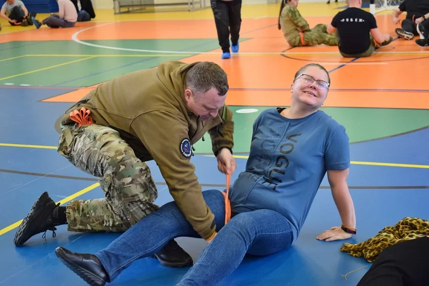 Несколько часов в зале физкультурно-оздоровительного комплекса «Лидер» лучшие инструкторы делились навыками оказания первой помощи в боевых условиях. Подобное занятие прошло в Тарусе впервые и собрало порядка 50 человек. Тарусяне познакомились с базовыми техниками само- и взаимопомощи и отработали последовательность действий, необходимых для стабилизации состояния раненого, работая в группах.