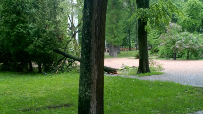 В калужском парке культуры и отдыха дерево упало на скамейку и фонарь. Напомним, что парк в настоящее время закрыт в связи с ограничительными мерами, так что на момент происшествия никто не пострадал.