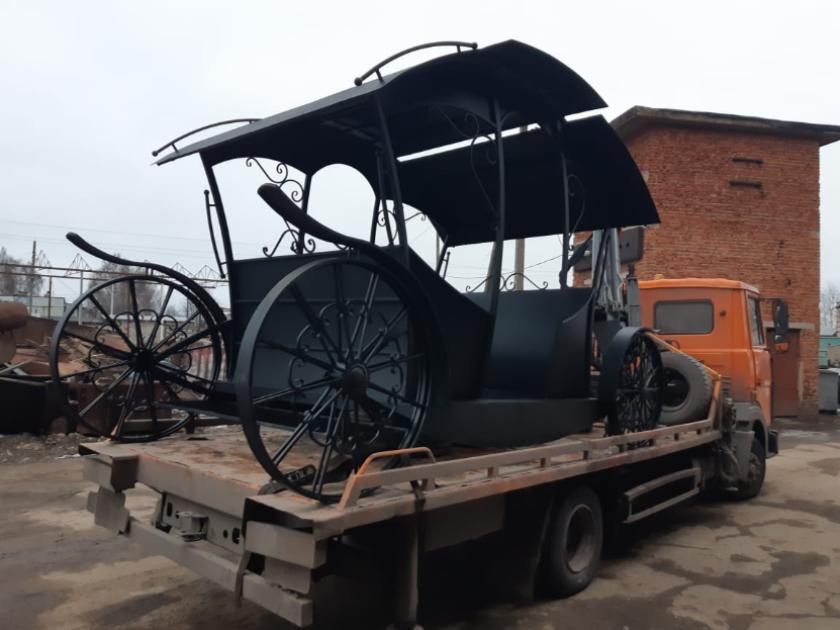 Карету из кованой стали установили на центральной площадке.