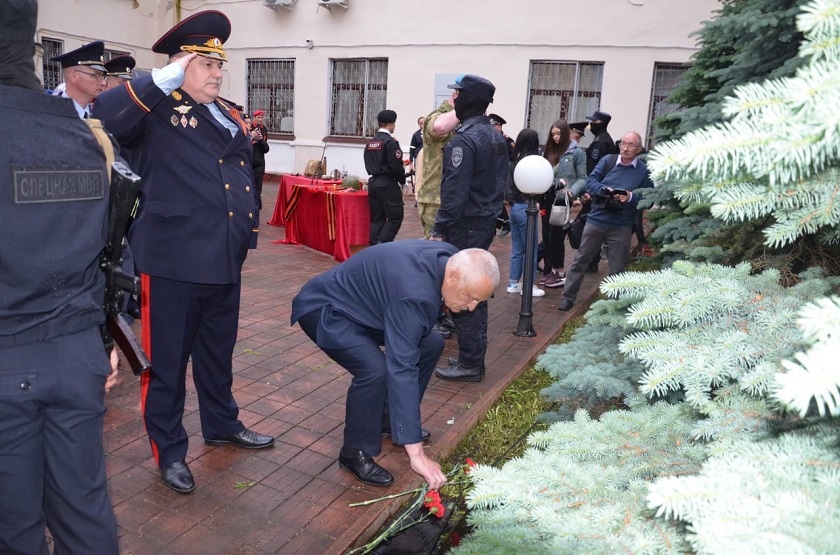 Участники акции почтили память всех погибших на войне соотечественников минутой молчания. В их честь прозвучали выстрелы траурного салюта.К гранитным плитам с именами сотрудников ОВД, погибших при исполнении служебного долга на фронте и в тылу, легли цветы. В небо взмыли белые шары с привязанными к ним бумажными журавликами.