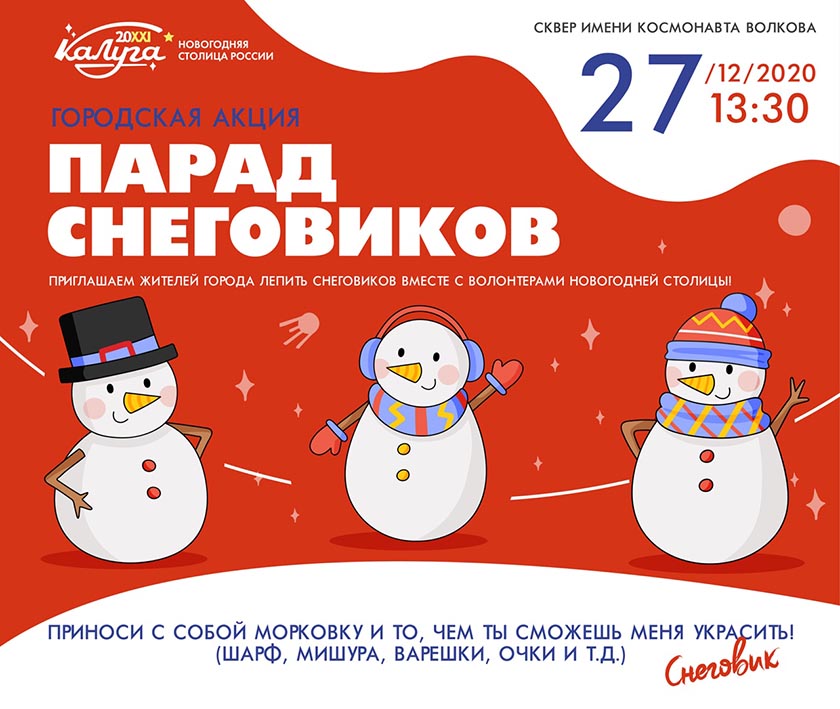 Волонтеры Новогодней столицы России приглашают всех калужан и гостей Калуги присоединиться к новогодней акции. Самое время лепить снеговиков! И погода позволяет, и настроение праздничное.