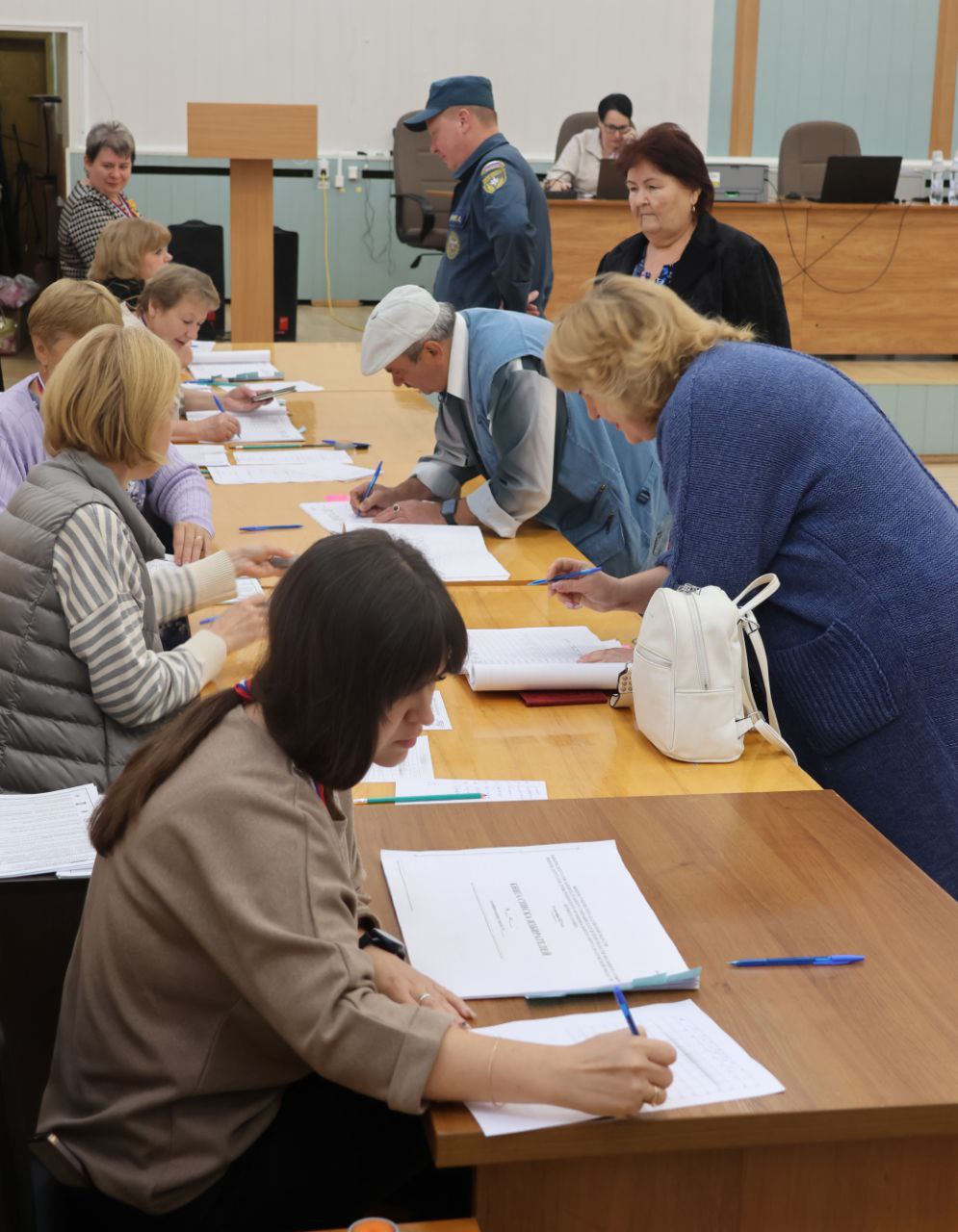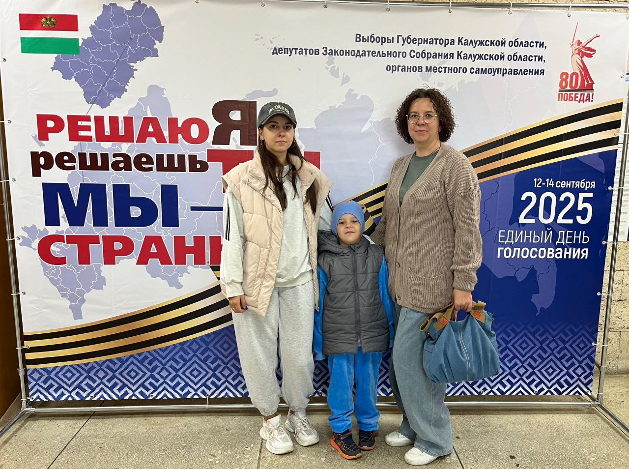 Оксана Анисимова пришла на выборы с дочерью Кариной (она уже голосует и сыном Серафимом. Он ещё мал для голосования, но уже понимает, что выборы - это важно для мамы.