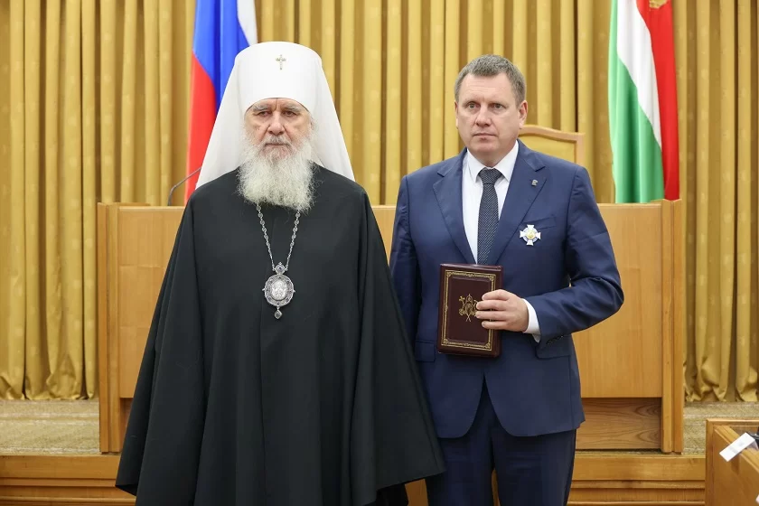 Митрополит Климент поблагодарил представителей органов власти за взаимодействие с епархией. Он вручил Орден Святого Благоверного князя Даниила Московского III степени председателю Законодательного Собрания Геннадию Новосельцеву.