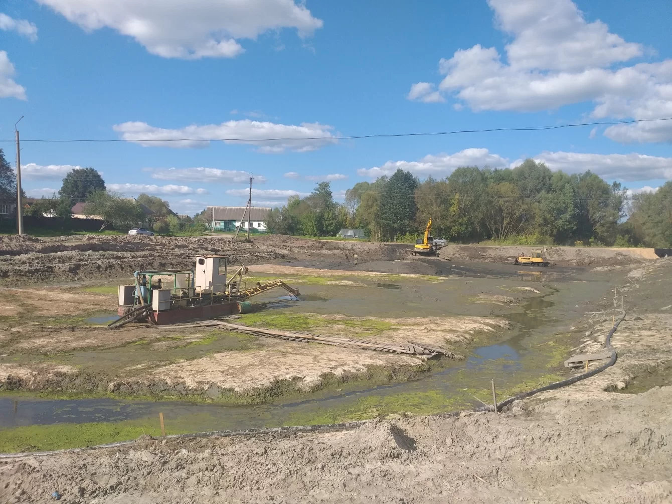 Подрядная организация уже выполнила очистку прибрежной зоны от растущих деревьев и кустарников, проложила водоотводную трубу.