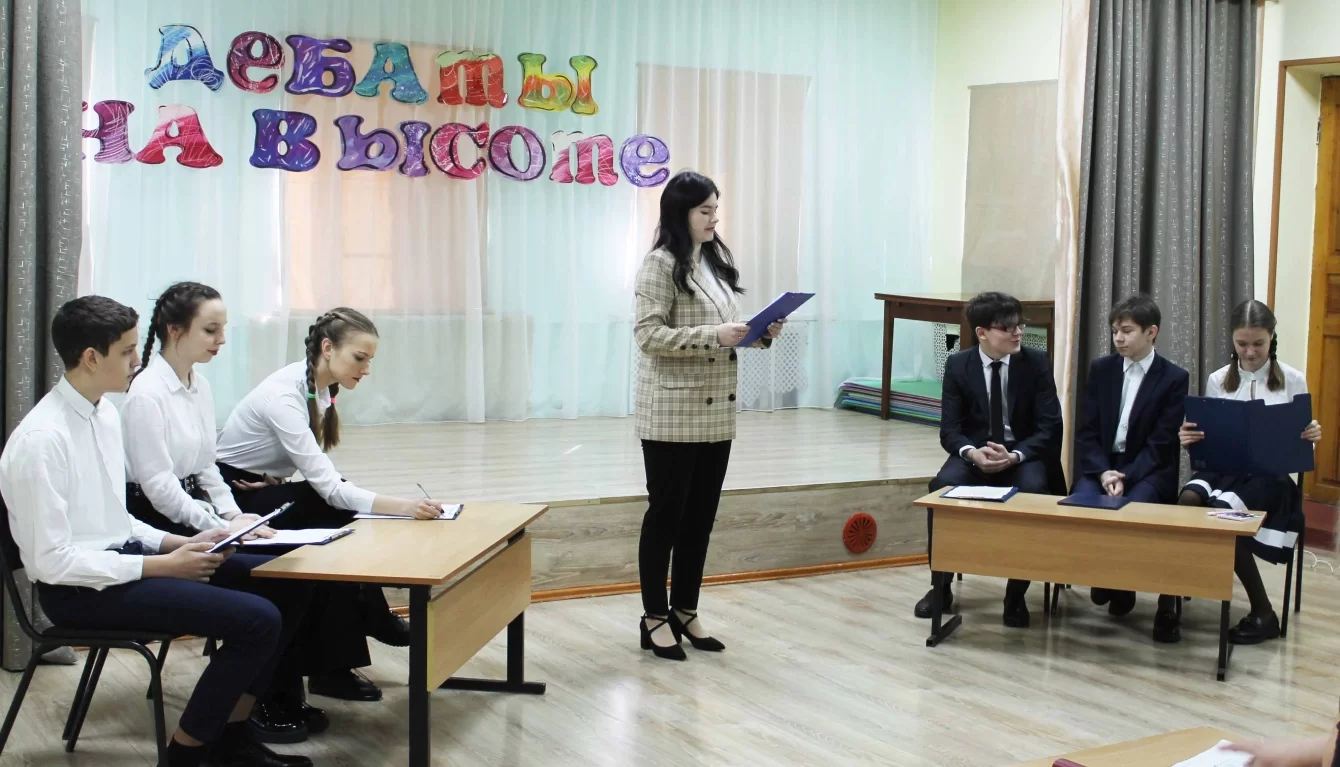 Команды учащихся, состоявшие из капитана, вице-спикера и аналитика, утверждали или отрицали предложенный тезис, используя аргументы и поддержки.