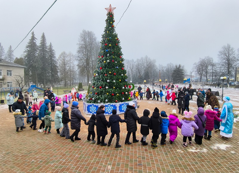 И вот настало время главного чуда. Под громкие возгласы: «Раз, два, три – елочка, гори!» на зеленой красавице зажглись сотки разноцветных огоньков. Ребята встали в большой хоровод, а в конце получили от сказочных героев сладкие подарки.