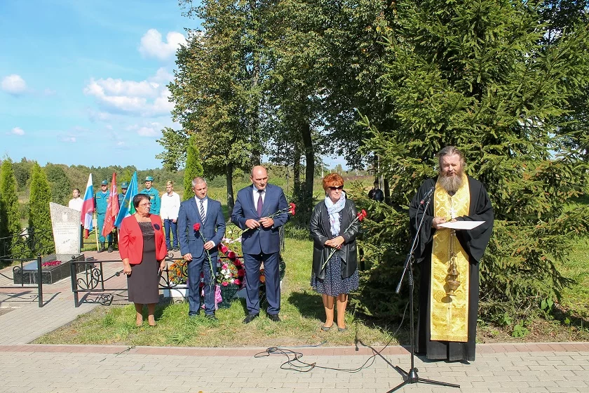 По расстрелянным немецкими карателями 8 января 1942 года и захороненным в братской могиле жителям отслужил литию настоятель храма святых апостолов Петра и Павла отец Алексей.