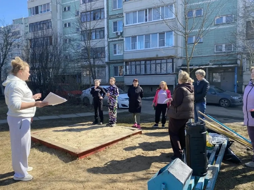 По завершении работ по уборке во дворе состоялось собрание жильцов. На нем был представлен проект будущего оформления дворовой территории, который включает в себя установку детского городка, малых спортивных форм, песочницы, обновление существующих лавочек и монтаж системы видеонаблюдения.