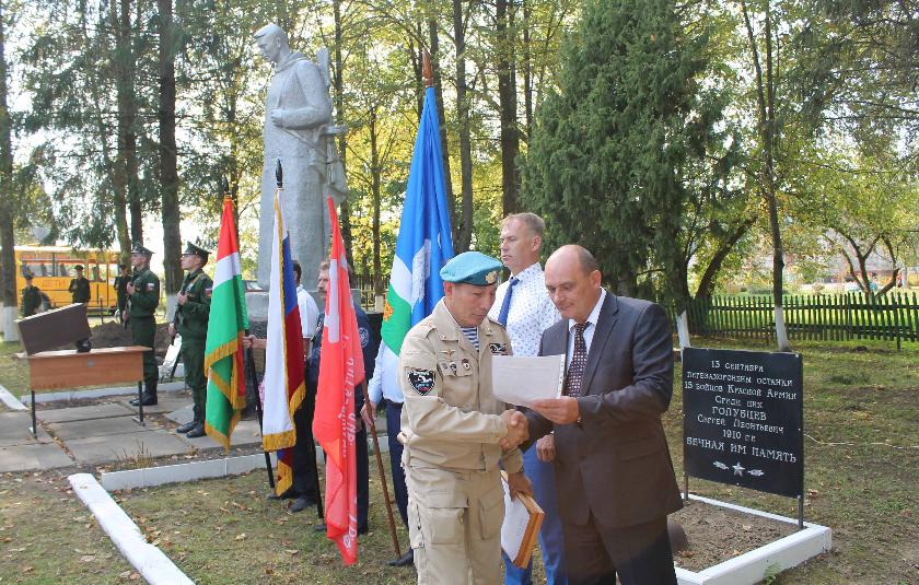 В мероприятии приняли участие глава администрации Жиздринского района Александр Барыбин, глава администрации села Валентина Кожина, председатель Регионального совета ДОСААФ РФ по Калужской области Андрей Иванов, начальник отдела управления молодежной политики и общественных проектов департамента внутренней политики Брянской области Олег Шевелев, поисковые отряды из Томска, Брянска, Жиздринского района, жители и гости села.