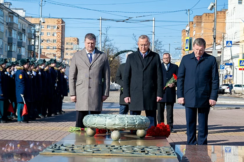 В первой половине дня губернатор области Владислав Шапша и Юрий Селиверстов возложили цветы к могиле Неизвестного солдата на пл. Победы в Калуге.