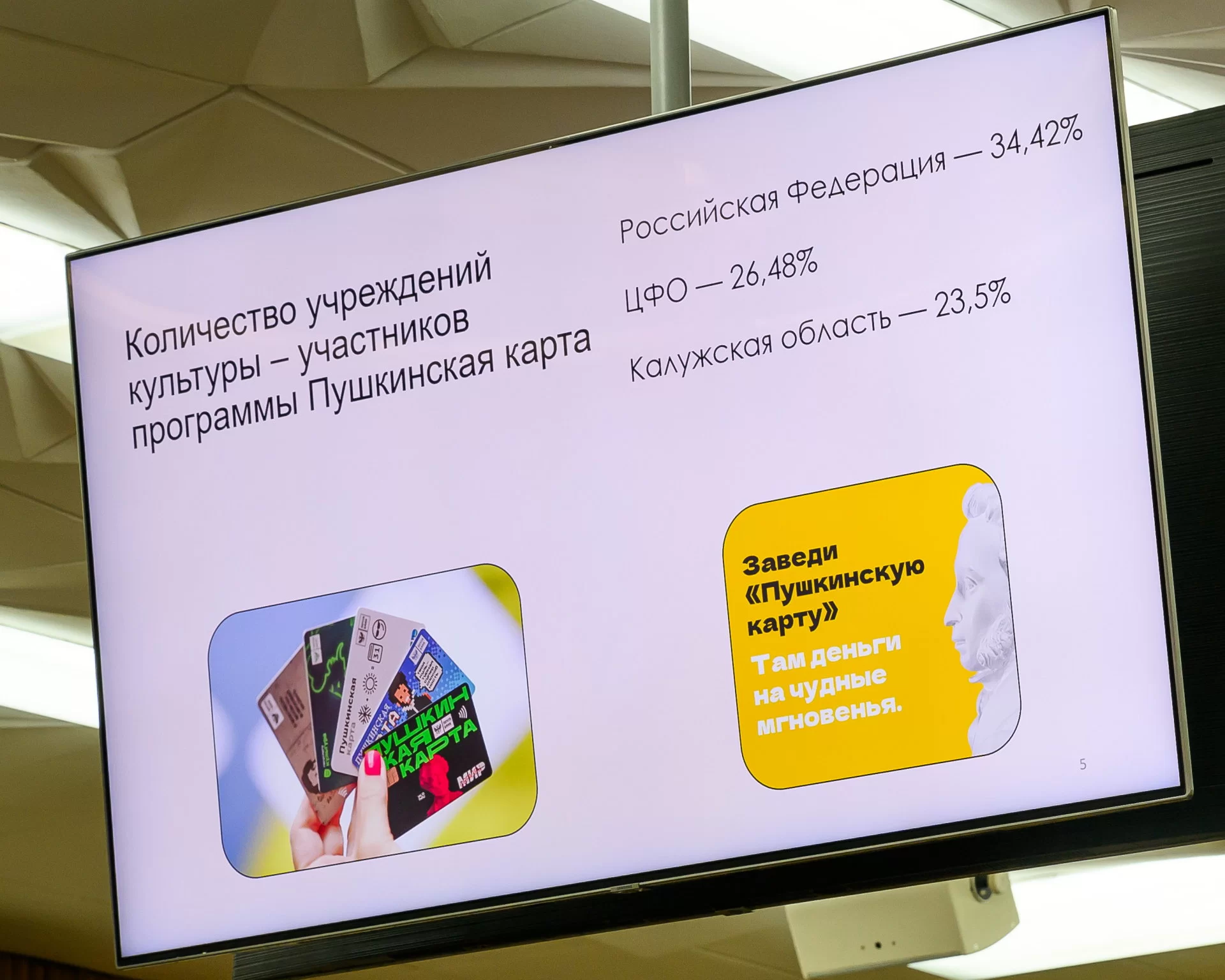 Одной из тем консультативного совета сталареализация социальной программы для молодежи «Пушкинская карта» на территории региона. Она стартовала с 1 сентября 2021 года по поручению Президента Российской Федерации. Участники программы - молодые люди в возрасте от 14 до 22 лет, которые могут оформить Пушкинскую карту номиналом 5000 рублей. Потратить их можно, посетив мероприятия в учреждениях культуры. С 2025 года программа войдет в федеральный проект «Семейные ценности и инфраструктура культуры». На сегодняшний день на территории области выдано 70 715 Пушкинских карт. Это 74% от общего числа молодежи региона в возрасте от 14 до 22 лет. Данный показатель по области выше показателя по России (69,5%) и по Центральному федеральному округу (67,5%). В проекте участвуют 82 учреждения культуры, в том числе государственные организации, осуществляющие платные услуги населению, и 72 муниципальных учреждения культуры.