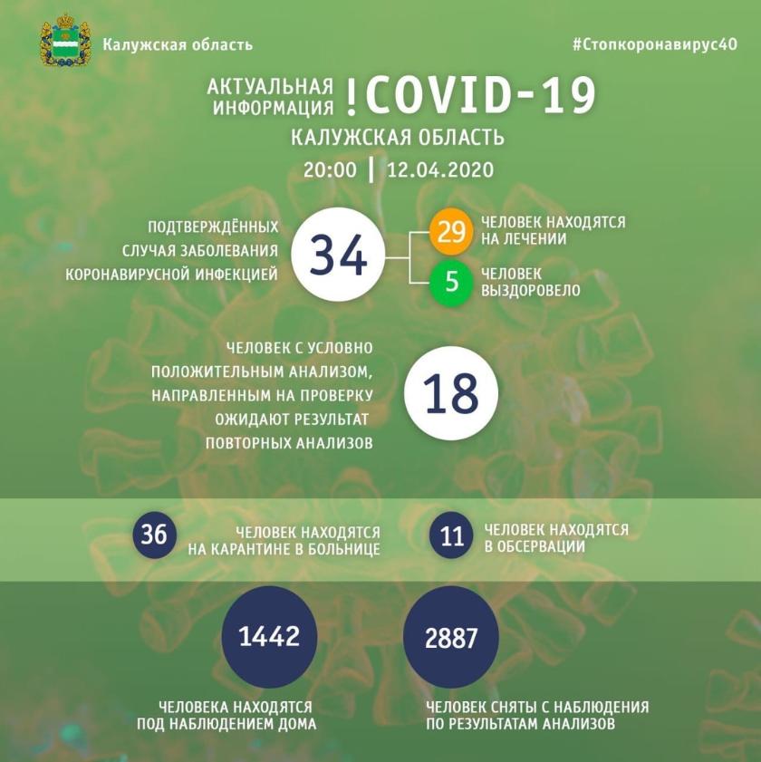 Что касается географии новых случаев заражения, пятеро пациентов добавились в Калуге, по два - в Боровском и Тарусском районах, один - в Обнинске.