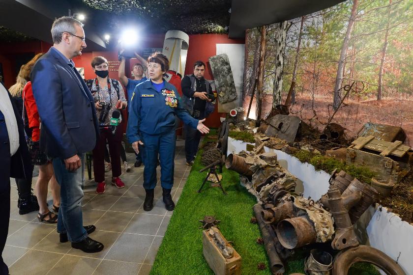 Его основатель – руководитель поискового отряда «Обнинские следопыты» Галина Слесарева – рассказала руководителю области, что все реликвии подняты поисковиками с мест боев, проходивших на территории области. В музейных фондах собраны фрагменты советских самолетов, самолётов союзников, а также фашисткой Германии, части тяжелой военной техники и вооружения, предметы быта.