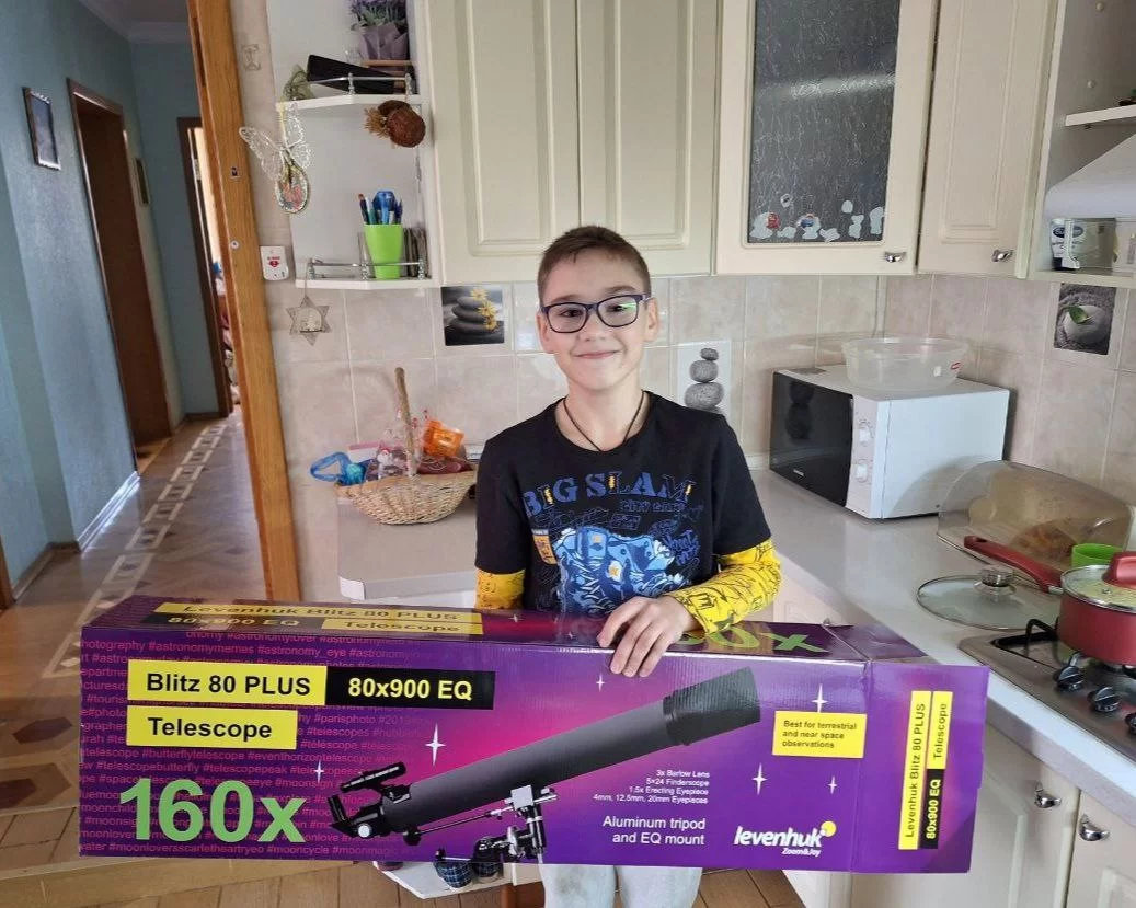 «Сейчас он действительно счастлив и ждет, когда погода наладится и он сможет наконец-то посмотреть на звездное небо в свой настоящий и очень крутой телескоп»,