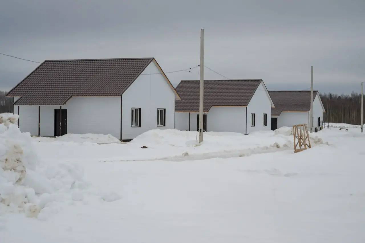 Десять домов здесь уже практически готовы к заселению, ещё 22 возведут в этом году. Каждый дом площадью 75 квадратных метров с тремя комнатами.