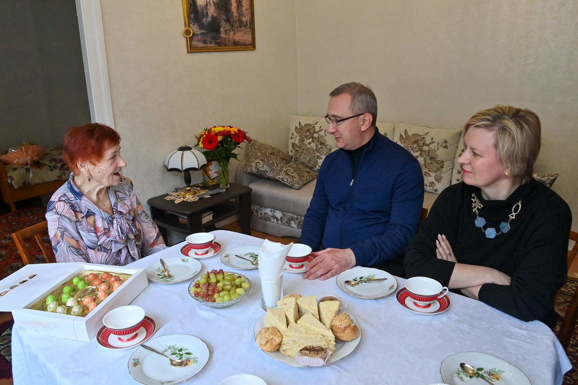 За чашкой чая Владислав Шапша и Екатерина Гавриловна обсудили самые разные темы и вопросы. Женщина передала губернатору папку с обращением по поводу дальнейшего благоустройства своего микрорайона. Владислав Шапша также поинтересовался, ходила ли она на выборы. Екатерина Гавриловна рассказала, что сама посетила избирательный участок и проголосовала за выбранного кандидата. Губернатор поблагодарил ветерана за неравнодушие и боевой настрой и пожелал ей здоровья и активного долголетия.