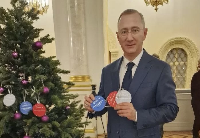Губернатор Калужской области Владислав Шапша перед началом работы Госсовета в Москве по теме наставничества снял три шарика с Кремлевской «Елки желаний».
