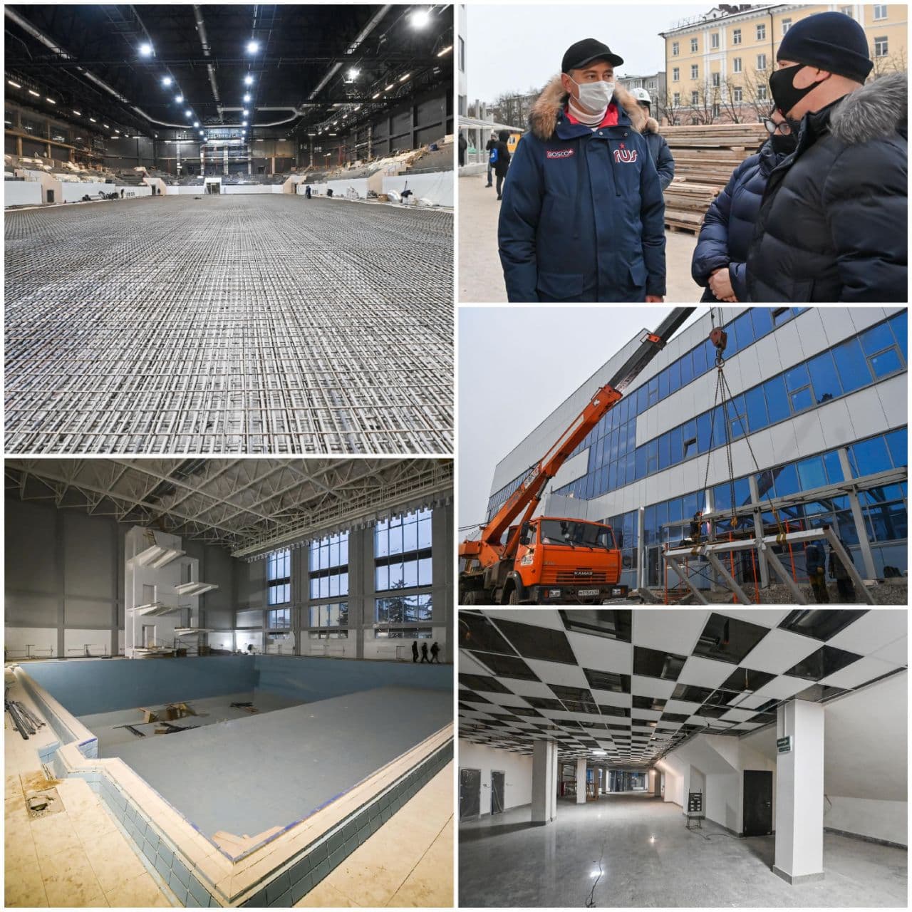 По словам Владислава Шапши, в водном комплексе устанавливают витражную конструкцию между 50-метровым и прыжковым бассейнами. А на ледовой арене Дворца завершается подготовка технологического «пирога». Уложено 24 км труб системы охлаждения ледового поля. Скоро начнётся заливка бетонного основания. И когда оно застынет, зальют пробный лёд.