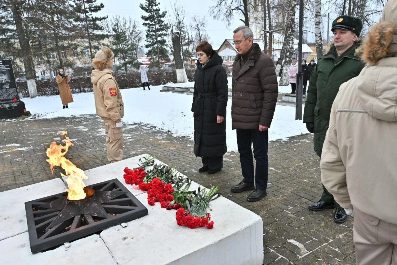 Глава региона в День Героев Отечества возложил цветы к Вечному огню мемориала в Козельском районе, откуда родом два Героя России. Гвардии старший сержант Владимир Игнатов и Гвардии старший лейтенант Артём Щукин геройски погибли при исполнении воинского долга в Новороссии.