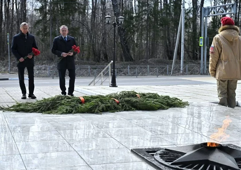 В рамках рабочей поездки в Барятинский район губернатор Калужской области возложил цветы к Вечному огню мемориального комплекса «Зайцева гора».