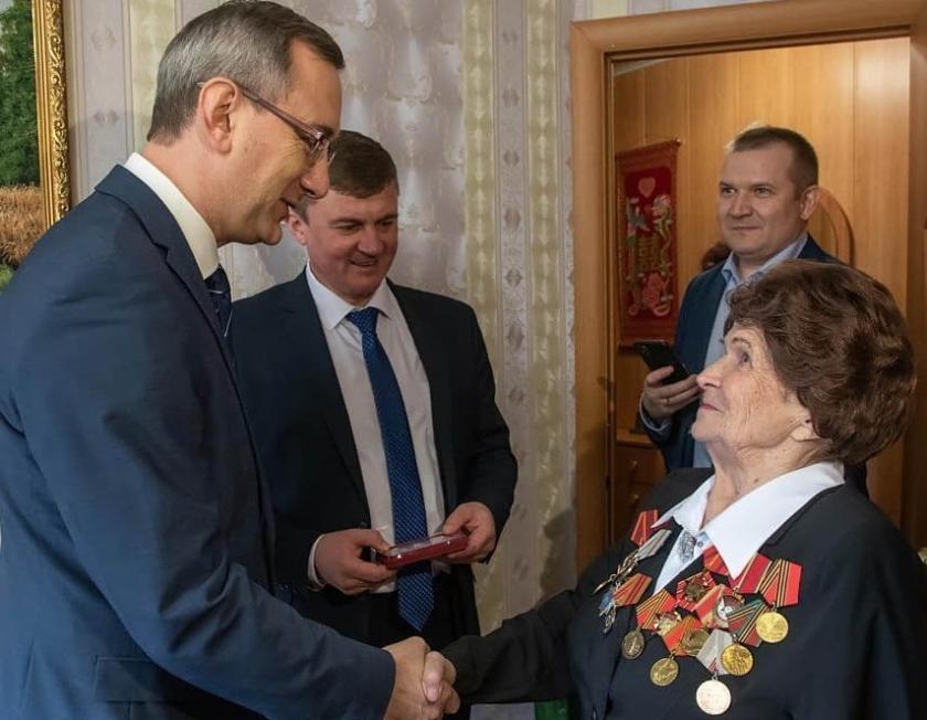 Владислав Шапша поблагодарил ее за труд на благо Родины и пожелал здоровья и долгих лет жизни и вручил ветерану юбилейную медаль «75 лет Победы в Великой Отечественной войне 1941-1945 годов».
