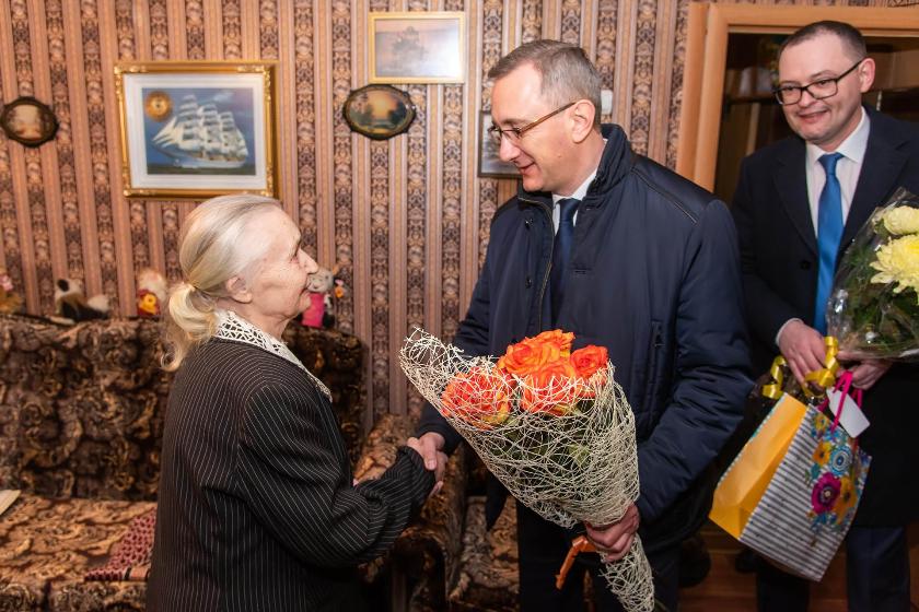 Владислав Шапша поблагодарил Антонину Ивановну за долгий честный труд на благо Родины и пожелал здоровья и благополучия.