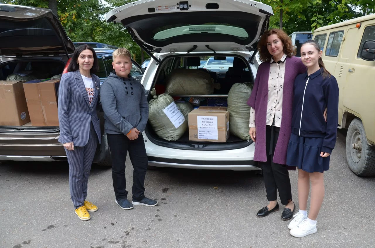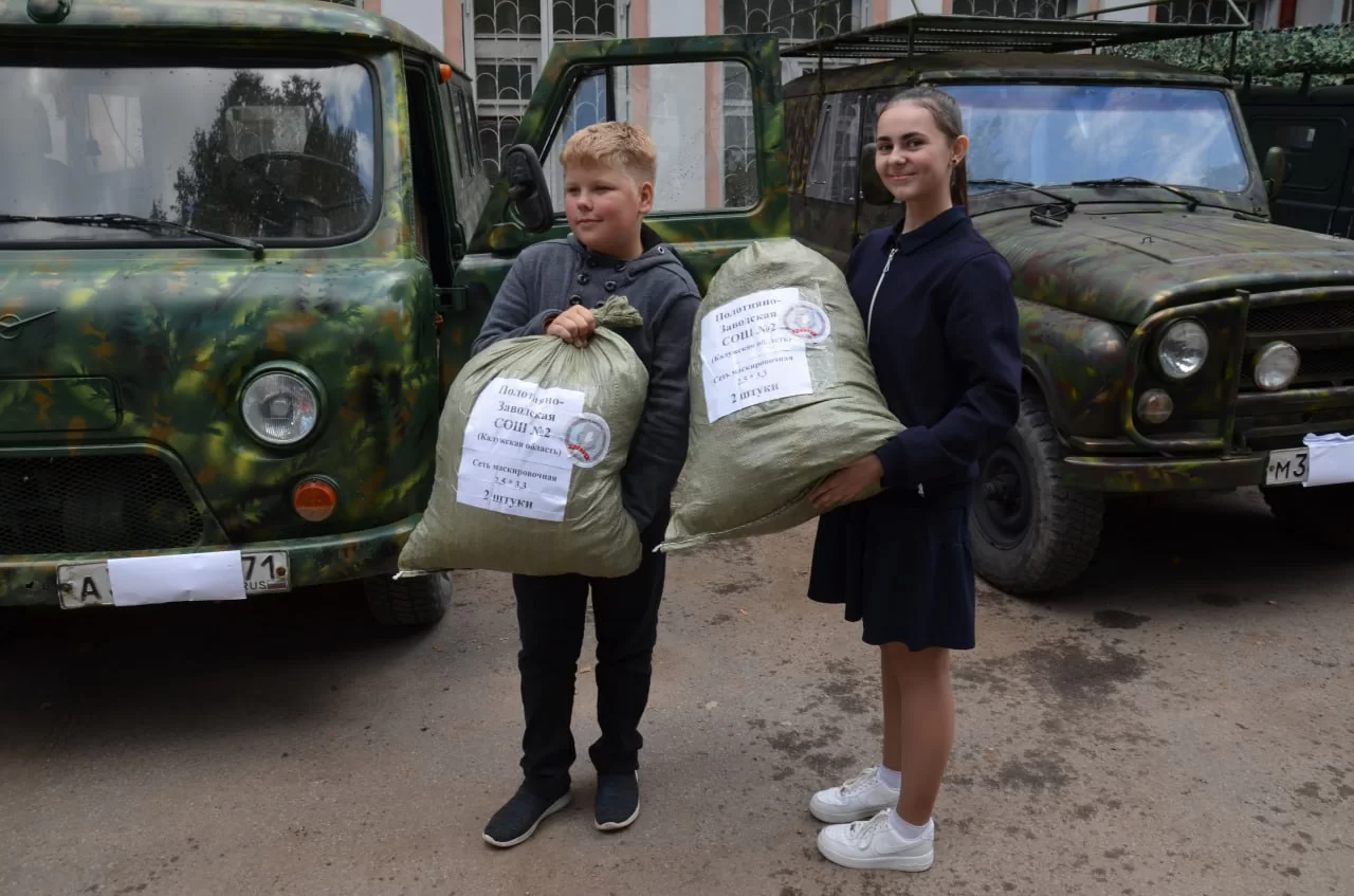 – рассказал представитель волонтерской группы «Братья» Александр Раенко.Помимо автомобильной техники, волонтеры доставят на передовую мотоцикл «Урал», бензогенераторы, печки-буржуйки, маскировочные сети, канистры и многое другое. Маскировочные сети были сплетены учениками и педагогами средней школы № 2 поселка Полотняный завод при активном участии местных пенсионеров. Они же собрали посылки для бойцов, написали им письма с пожеланием победы.