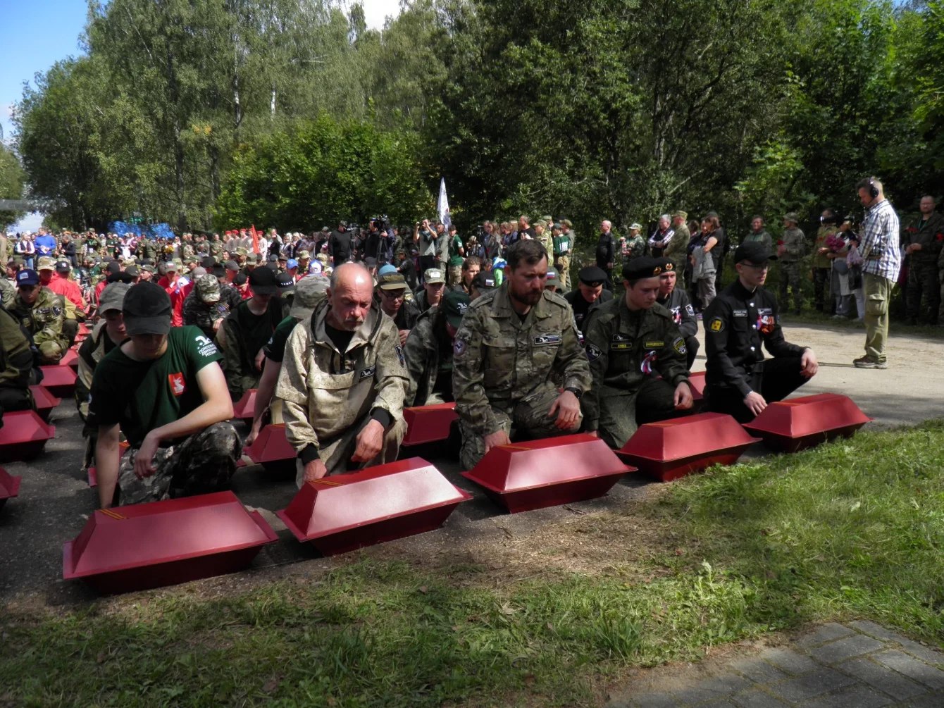 Церемония захоронения была наполнена глубоким символизмом. Поисковики, отдавшие дань уважения, стояли на колене, склонив головы перед прахом бойцов. В своих выступлениях официальные лица благодарили поисковиков за их титанический труд.- Благодаря вам 196 бойцов вышли из забвения, у них будет достойное место захоронения и вечная наша память, - заявил заместитель директора департамента Минобороны РФ Андрей ТАРАНОВ.