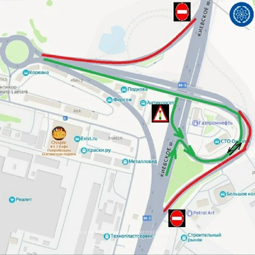 В связи с реконструкцией съездов транспортной развязки «Северный въезд - город Обнинск», которую проводит компания «Автодор», въезд в город будет организован по хорде, ранее использовавшейся для движения в сторону Москвы. На данном участке будет введено двустороннее движение со светофорным регулированием.