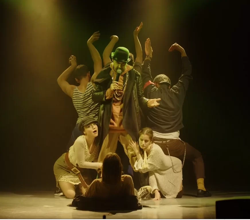 Сюжет знаком практически каждому, но под каким оригинальным «соусом» его преподнесли зрителям! Спектакль отличается неожиданными художественными и сценическими приемами. Декорации выполнены в духе минимализма. Костюмы артистов созданы в стиле XIX века, однако у каждого персонажа в наряде присутствовал аксессуар, отсылающий к хип-хоп-культуре. Свидригайлова, в частности, облачили в морковного цвета толстовку и блестящие цепи.