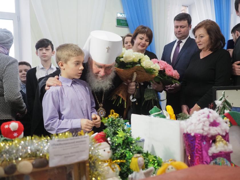 По традиции открыл выставку митрополит Калужский и Боровский Климент. Он долго ходил по залу в сопровождении детей, рассматривая творения их рук.
