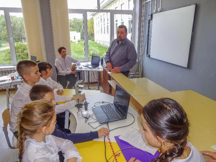 На показательном уроке гостям Романовской школы продемонстрировали не только схему действия мультидатчиков, но и принципы работы новых электронных микроскопов, способных увеличивать изображение до тысячи раз.