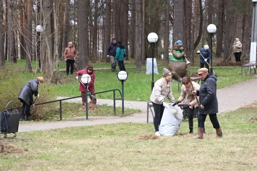 Самый многочисленный субботник прошёл в городском бору у пруда. А начался он с общего хоровода и концертной программы, подготовленной работниками культуры. Это задало настроение.