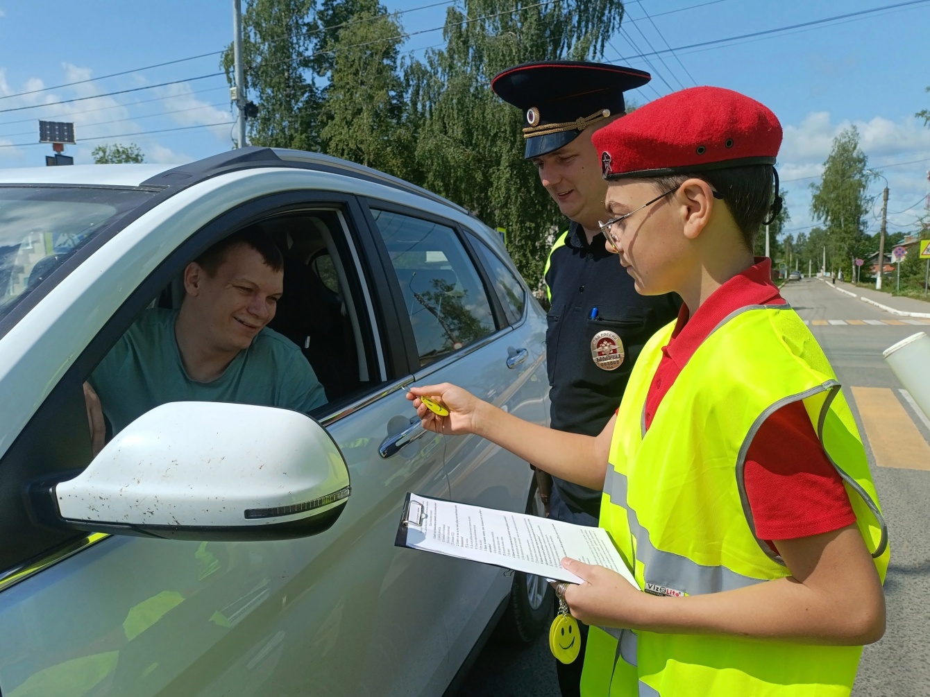 Юнармейцы получили возможность окунуться в мир дорожной службы, ненадолго примерив на себя роли государственных инспекторов дорожного надзора. Вместе с инспектором ОМВД России по Ферзиковскому району Михаилом Шутовым ребята вышли на улицы поселка, где проводили остановку автомобилей для проверки документов и знаний водителями правил перевозки детей в автомобилях. Водители с радостью принимали участие в акции. Большинство из них отвечали, что перевозить детей до семи лет можно только в автокресле, а с 12 лет и спереди, и сзади со штатными ремнями. Каждому водителю юнармейцы вручали памятки с разъяснениями правила безопасной перевозки детей.