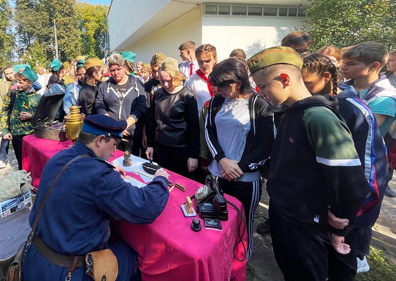 На входе под вывеской «Призывной пункт» люди в военной форме записывали ребят в ряды РККА. Все они – участники клуба военно-исторической реконструкции «Брянский фронт» под руководством Дмитрия Куренкова. Внутри юных защитников Родины поприветствовали ветеран война Мария Власенкова, замглавы администрации Марина Денисова и другие почётные гости.