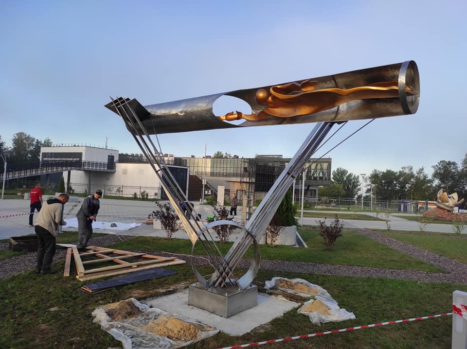 В среду, 4 августа, монтажники установили памятник на площадку возле второй очереди музея в Калуге.