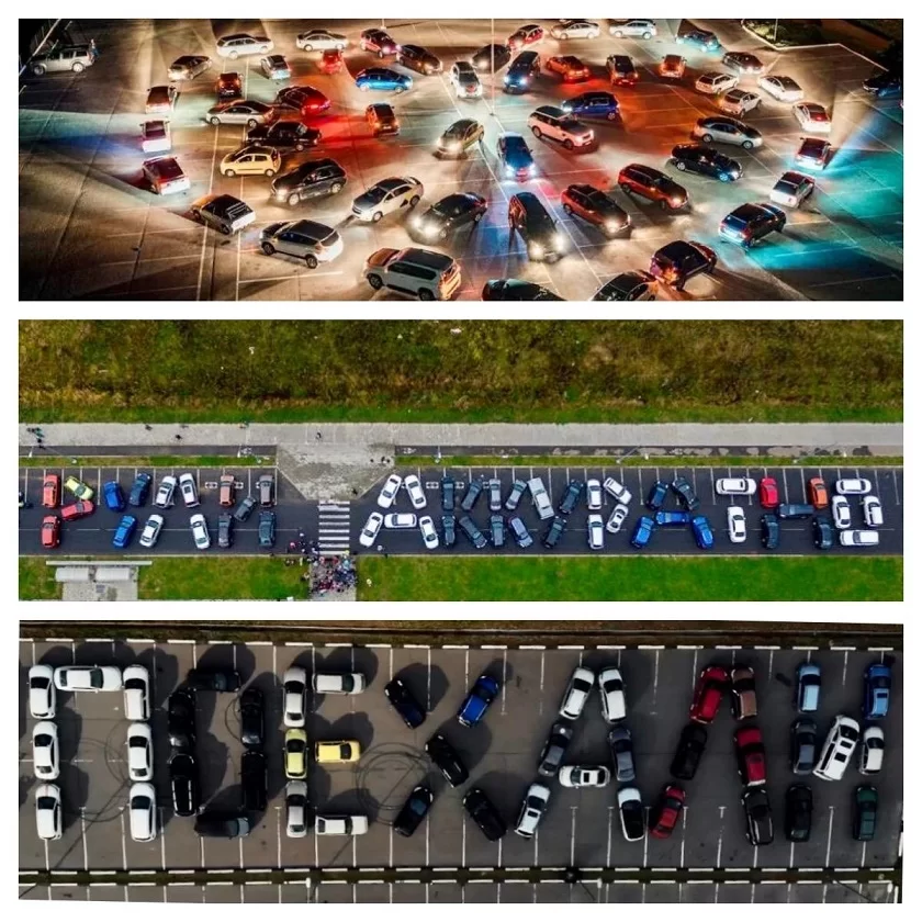 Ранее подобные флешмобы уже проводились. Водители выстраивали свои авто в надписи «рули аккуратно», «поехали», а также в огромное сердце.