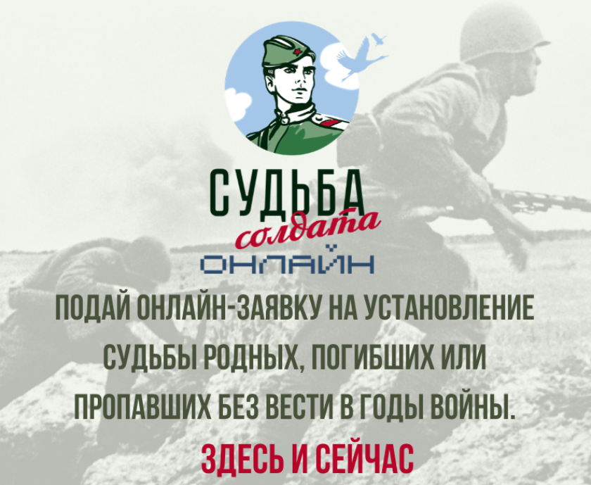 Проект «Судьба солдата» запущен при поддержке Фонда Президентских грантов в 2017 году. В 2019 году к нему присоседились активисты Общероссийского народного фронта «За Россию!». В канун Дня Победы в 85 регионах России были открыты 120 стационарных и мобильных общественных приемных по сбору заявок на поиск информации об участниках Великой Отечественной войны от их родственников. Получено более четырех тысяч заявок.